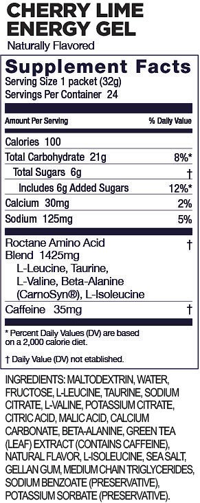 Összetevők: Maltodextrin, víz, fruktóz, L-leucin, taurin, nátrium-citrát, L-valin, kálium-citrát, almasav, citromsav, kalcium-karbonát, béta-alanin, zöld tea (levél) kivonat (koffeint tartalmaz), természetes aromák, L-izoleucin, tengeri só, gellán gumi, közepes láncú trigliceridek, nátrium-benzoát, kálium-szorbát.