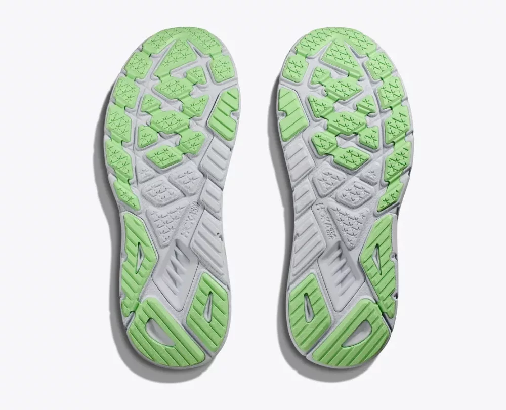 Az új Hoka Arahi 7 nem egy átlagos stabil cipő, hanem szabadalmaztatott J-Frame™ technológiával ugyanazt az áramvonalas támogatást nyújtja, mint elődje. A zónásan kialakított, kötött felsőrésszel frissített cipő jobb rögzítést biztosít a lábközépen, az illeszkedést pedig finomhangolták a puhább nyelvvel és a fűzővonal alatti rugalmas háló segítségével, amely segít csökkenteni a nyelv csúszkálását.