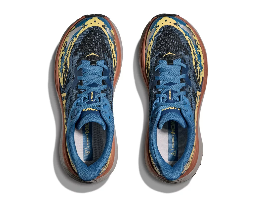 Az egyik legősibb modell hosszú idő után tér vissza, újdonságokkal megpakolva. Átmenet az aszfalt és a terep között, hatalmas csillapítás, puhaság és egyben stabilitás. Ez az új Stinson H-frame stabil technológiával rendelkezik az egyenetlen talajból fakadó instabil érzés megszüntetése érdekében. EVA habanyaga rendkívül puha és elképesztően csillapított, a márka ősi jegyeit hordozza. Belül magas perem húzódik a talpunk körül a megfelelő tartás biztosítására. A talp külső borítása több irányba álló fogazatból áll a megfelelő kapaszkodáshoz és a felsőrésze a megszokott Jacquard Mesh szövet. Így lesz tehát a Stinson 7 egy széles körben használható modell, maximális kényelemmel és stabilitással.