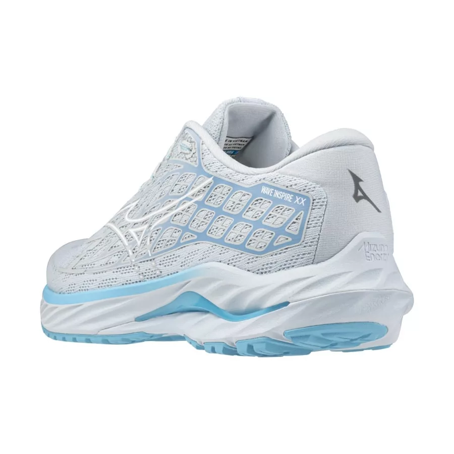 A 20. évforduláját ünneplő Mizuno Wave Inspire 20 megújult felsőrészt kapott a korábbi modellhez képest. A különleges alkalmat jelképezi a szöveten megjelenő, római számra utaló XX mintázat is. A Smooth Stretch Woven anyag különlegessége, hogy hosszanti irányban nem nyúlik, oldalirányban viszont igen, ezáltal biztosítja a maximális a kényelem faktort. A cipő belső ívén a MIZUNO WAVE lemez gondoskodik az alátámasztásról, megnövelve a stabilitást. Az anatómiai lemezforma tökéletesen követi a lábboltozat ívét. A középtalp teljes hosszában húzódó MIZUNO ENERZY speciális hab rendkívüli párnázottságot és energia-visszanyerést biztosít.