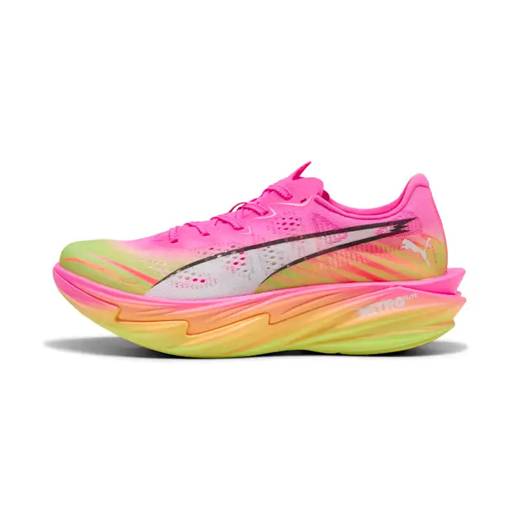 A Puma Deviate Nitro Elite 4 egy kifejezetten versenyzésre tervezett, ultrakönnyű futócipő, amely a maximális sebességet és energia-visszanyerést helyezi előtérbe. A teljes hosszúságú karbon PWRPLATE lemez robbanékony elrugaszkodást és hatékony futást biztosít a verseny napján. Az előző generációhoz képest könnyebb és hatékonyabb, miközben még reszponzívabb futásérzetet és stabilabb energiaátvitelt biztosít, így ideális választás egyéni csúcsok megdöntéséhez.