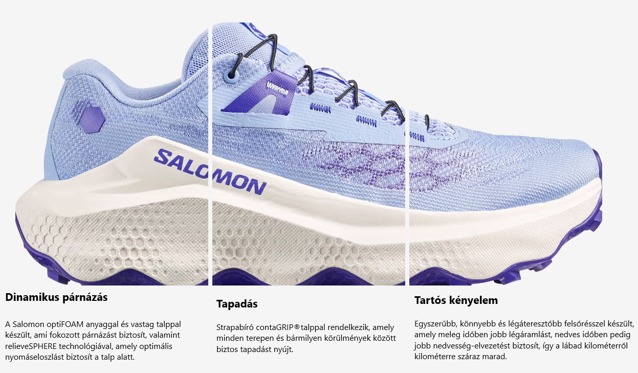 • Relieve Sphere talpkialakítás - a talp jellegzetes, hullámos geometriája kifejezetten a nyomás elosztására és a talpra nehezedő ismételt ütések tompítására lett kialakítva, hogy fokozott, tartós kényelmet biztosítson.