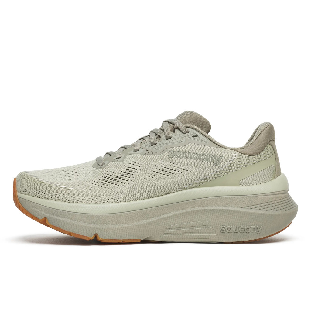 A Saucony Guide 19 egy mindennapi használatra tervezett stabilitást biztosító futócipő, amelyet kifejezetten a kényelemre és a stabil, magabiztos futásélményre optimalizáltak. A modell nagy mennyiségű PWRRUN habos középtalpat kapott, ami puha, mégis reszponzív lépteket eredményez, miközben a CenterPath technológia oldalsó falai természetes, kiegyensúlyozott talajfogást segítenek elő, anélkül, hogy túlságosan korrekciós érzetet keltenének. A rugalmas hálós felsőrész pedig személyre szabott, kényelmes illeszkedést biztosít hosszabb távon is. A Guide 19 alkalmas mindennapi edzésekre és hosszabb futásokra, olyan futók számára, akik stabilabb érzetre vágynak anélkül, hogy a cipő túl merev lenne.